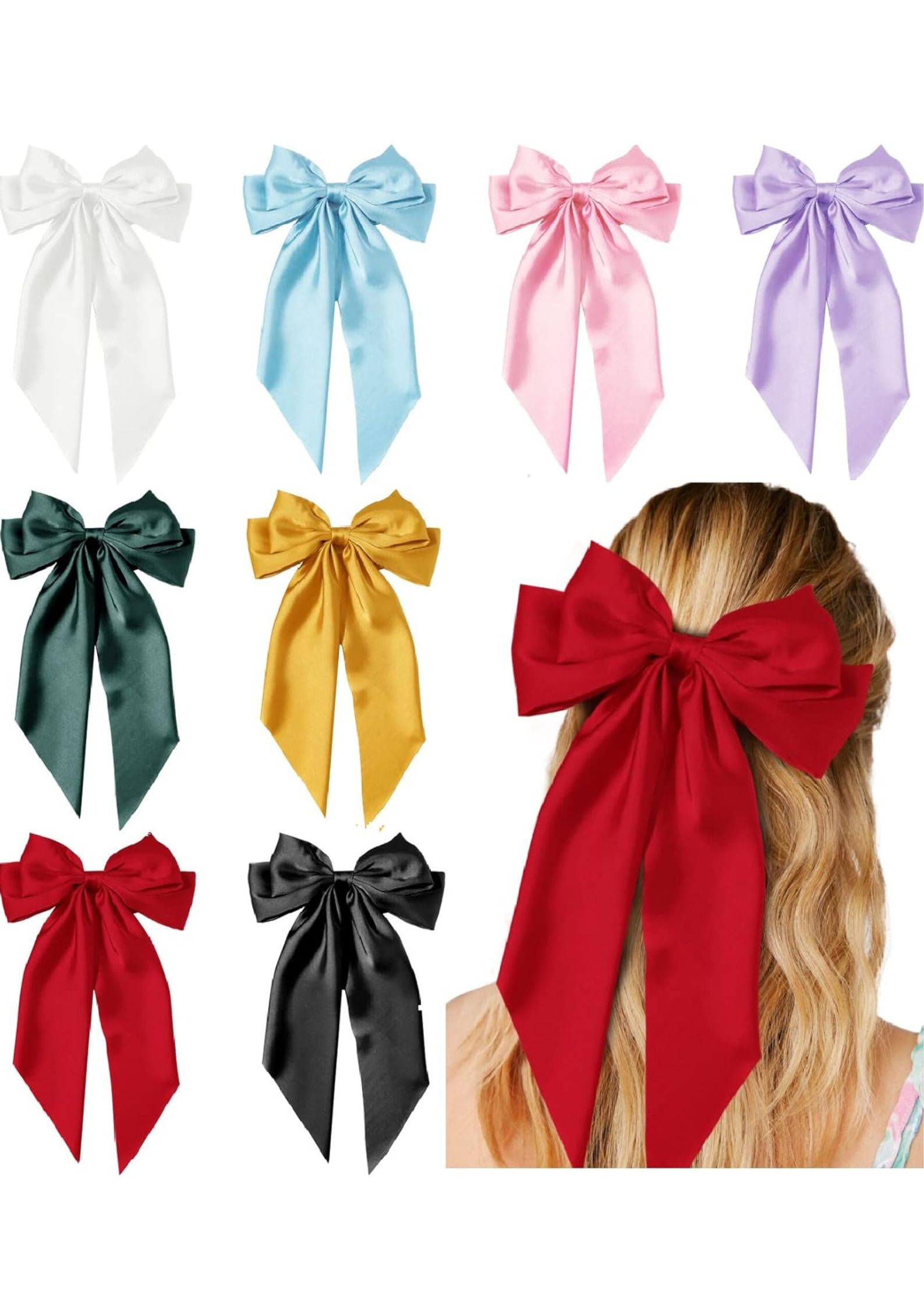 8 pcs Hair Bow Style Guide: Best Velvet, Crochet, & Silk Hair Bow Clips for Adults | How to Style Pink, Red & Black Bows