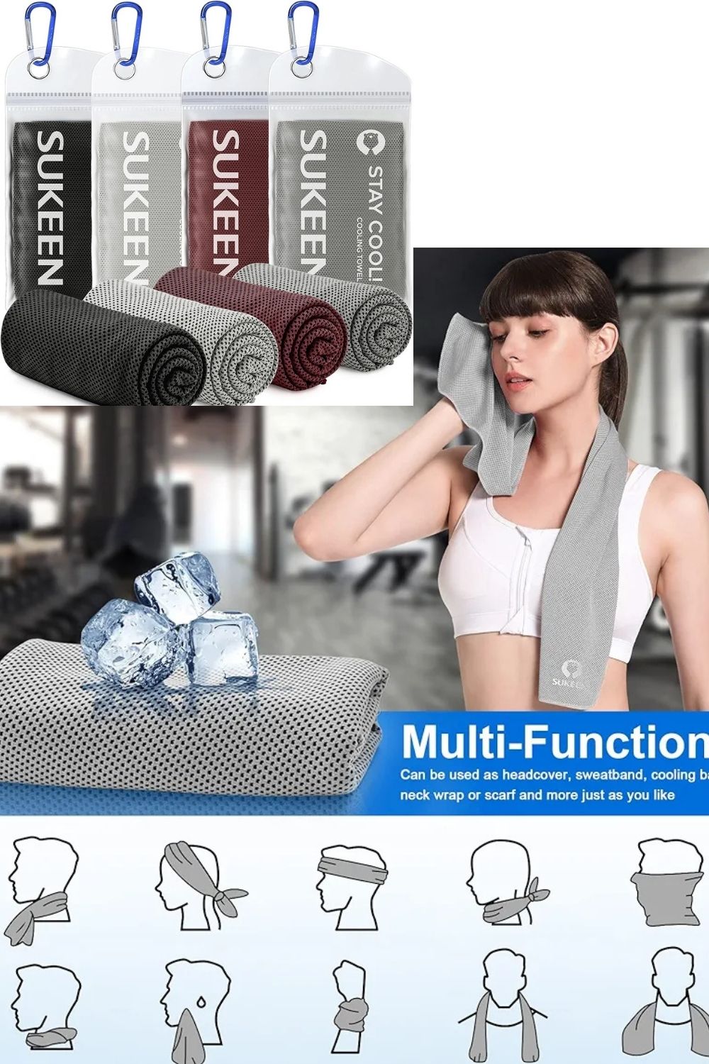 Easy to fold and carry in a gym bag or backpack. Ideal as a gym cooling towel, running towel, or travel towel.